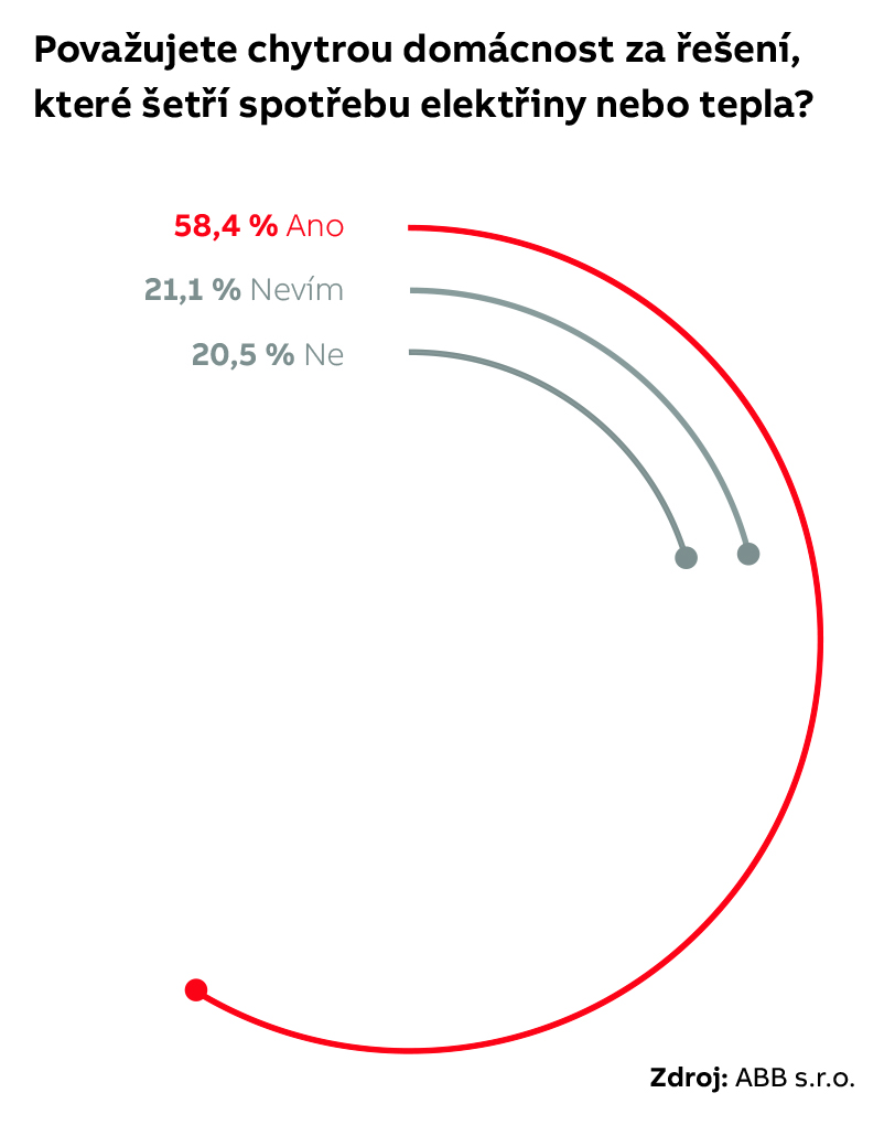 Vyplývá to z rozsáhlého průzkumu veřejného mínění (reprezentativní vzorek 1100 respondentů), který v únoru realizovala v rámci své působnosti v oblasti digitální transformace společnost ABB spolu s výzkumnou agenturou Ipsos. Průzkum má návaznost na lednové zpřísnění požadavků na energetickou náročnost budov (evropská směrnice EPBD II). Tyto požadavky řeší inteligentní elektroinstalace chytré domácnosti.