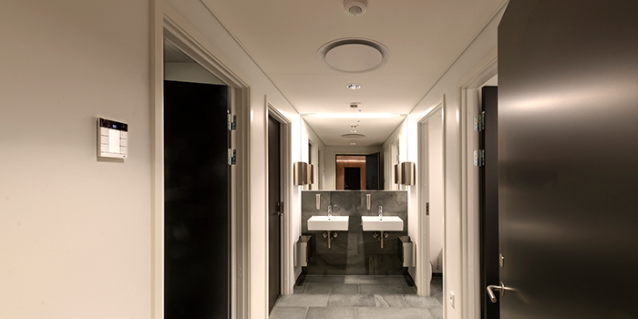 Sensorer registrerer lokalets aktuelle fugt- og CO2-indhold og sørger for at aktivere luftskiftet i henhold til de definerede værdier og opstillede retningslinjer. Bevægelsessensorer fra ABB kan også kombineres med fugt- og CO2-målere.