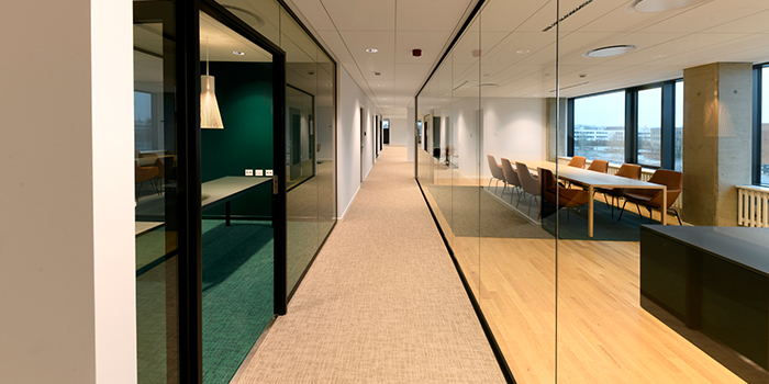 Det er forhold og hensyn, som også spillede ind, da Vellivs domicil i Ballerup blev udvidet med 4.100 kvm. til i alt 12.000 kvm. Bygningen er i tre etager med åbne kontorlandskaber præget af multifunktionel indretning og masser af dagslys. Og netop lysets rolle har spillet en central rolles for arkitekt og bygherre. Det fortæller projektleder Frank Pedersen fra Hoffmann:
