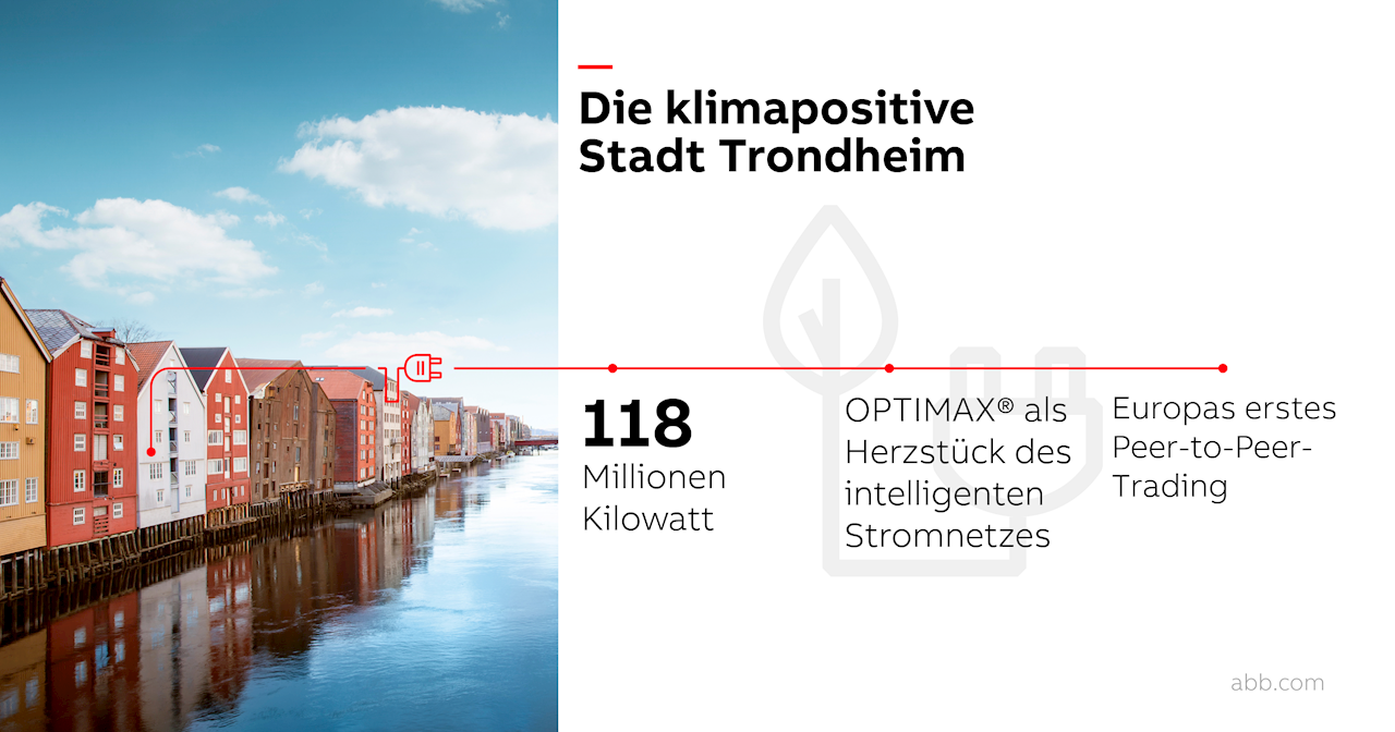 Mehr grüne Energie produzieren als verbrauchen, geht das? Die norwegische Universitätsstadt Trondheim will genau das in ausgewählten Stadtquartieren beweisen. Technologiepartner für das klimapositive Smart Grid der Zukunft ist ABB mit seiner intelligenten Energiemanagement- und -optimierungslösung ABB Ability™ OPTIMAX®.