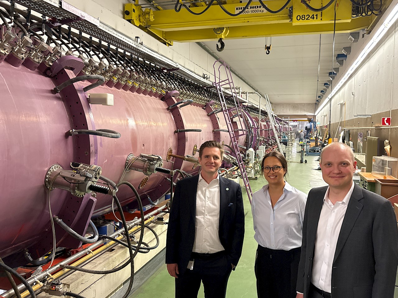 Von links nach rechts: Erich Labuda, Division President, ABB Motion Services, Olga Motovilova, Energy Efficiency Market Development Manager, ABB Motion Services and Antti Matinlauri, Head of Strategy, Business Development and Sustainability, ABB Motion Services. (Quelle: A. Haag, GSI/FAIR)