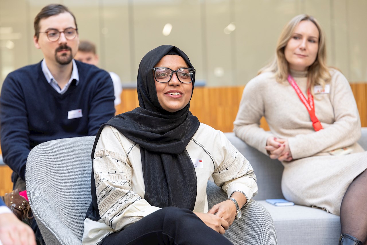 Faiqa Pervez (Mitte), die gerade ihr Masterstudium in Deutschland begonnen hatte, berichtete, wie wertvoll es war, die Unterschiede zwischen akademischer Theorie und industrieller Praxis zu erleben. Besonders spannend fand sie die internationale Teamarbeit und die kreativen Lösungen, die gemeinsam entwickelt wurden.