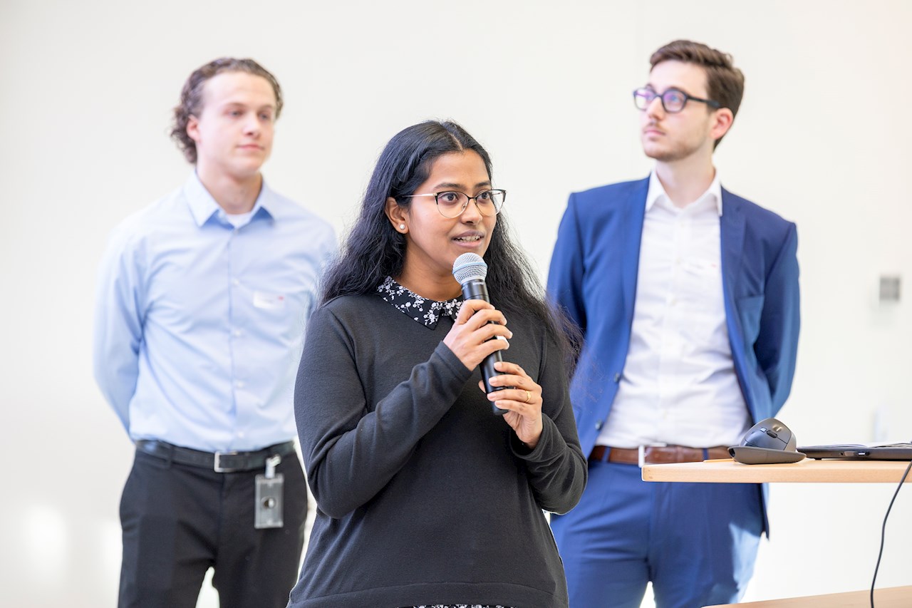 Rajashree Kamat (Mitte) stellte fest, dass kleine Veränderungen im Verpackungsdesign große Auswirkungen auf Emissionen und Kosten haben können. Sie lobte die Vielfalt im Team und die Verbindung unterschiedlicher Fachrichtungen, die neue Perspektiven eröffnete.