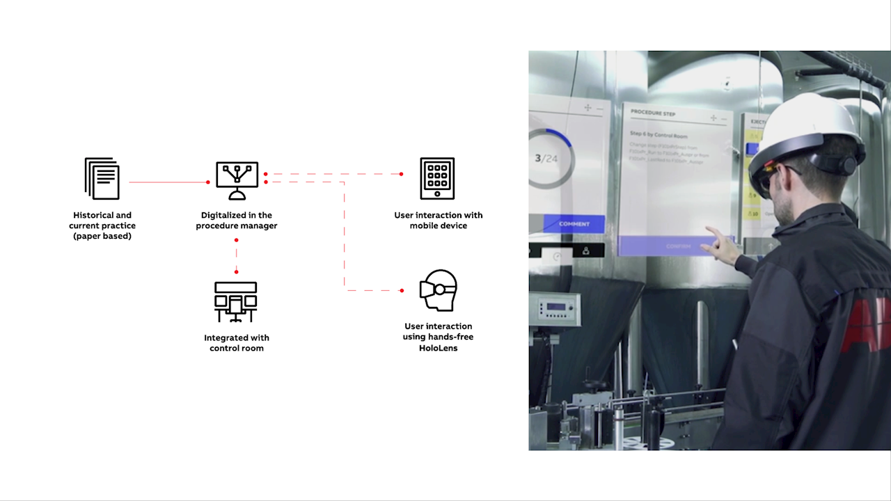 Die Bediener können mit Hilfe von Industrie-Tablets, Smartphones und Microsoft-HoloLens-Brillen berührungslos und in Echtzeit auf Daten von Anlagen, Prozessen oder Abläufen zugreifen. Dadurch wird die Zusammenarbeit in Echtzeit verbessert und die sofortige Dateneingabe über die Benutzeroberfläche vor Ort ermöglicht.