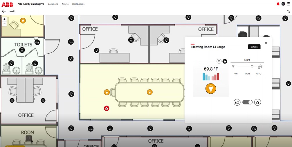 ABB Ability™ BuildingPro Vision gives facility teams an intuitive, live view of building operations. Through a dynamic, web-based interface – complete with animated floor plans, asset views, and dashboards – it enables real-time monitoring and control of key systems and spaces from a single platform. With its accessible design and local or cloud deployment options, Vision empowers operators to make faster, smarter decisions on-site.