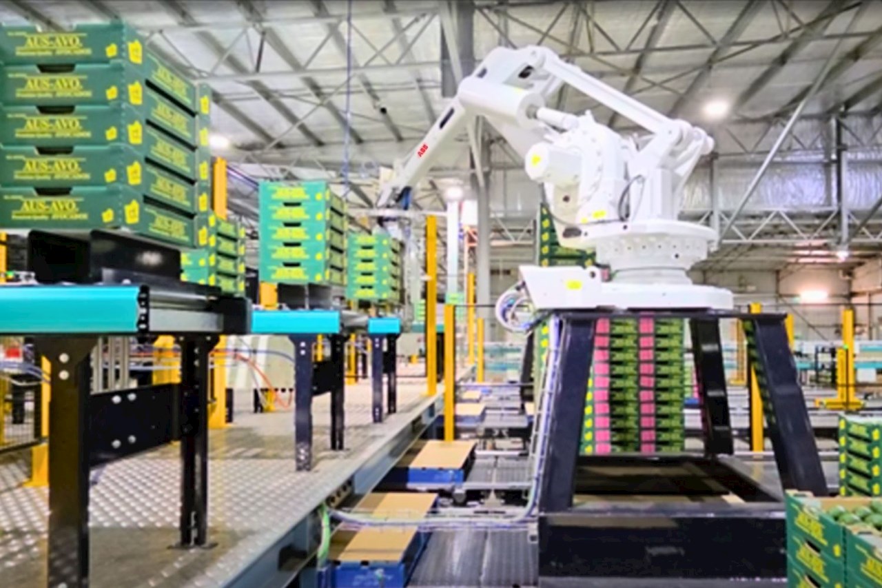A cutting-edge robotic fruit-tray palletising system engineered by Alnico Systems for Bendotti Avocado in Western Australia, which features ABB industrial robots.