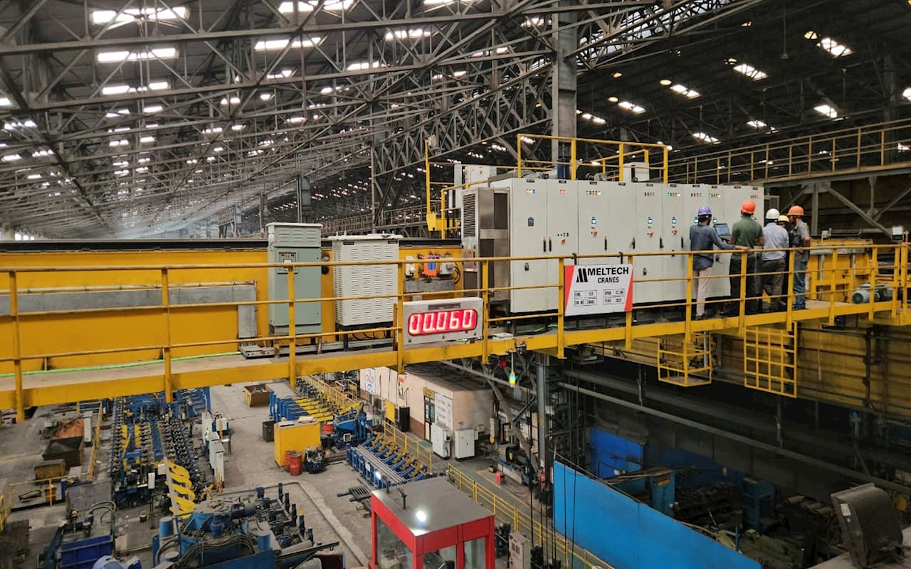 ABB has supplied over 20 ACS880 regenerative drives to Meltech for India’s largest integrated special alloy steel plant. These drives are deployed in heavy-duty, continuous-operation slag-handling outdoor grabbing cranes and coil-handling EOT cranes.