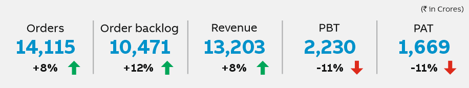 - Highest ever orders of INR 14,115 crore and revenue of INR 13,203 crore