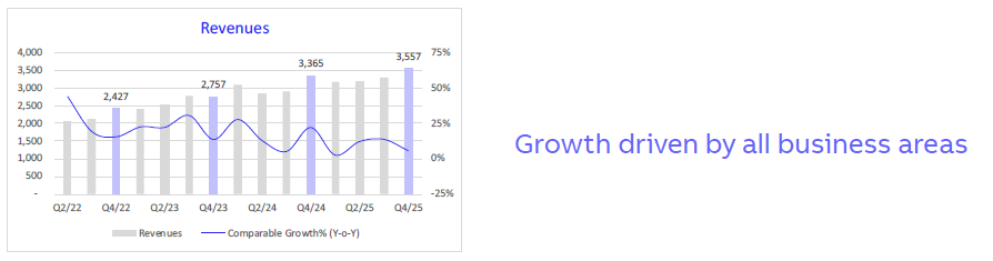 The Company reported INR 3,557 crore revenue growth of 6% for the fourth quarter thereby achieving INR 13,203 crore for CY2025. All the business areas posted revenue growth during the quarter. In Q4, CY2025, Electrification marked higher export revenue from Distribution Solutions and Smart Power divisions, as well as all other divisions of Electrification business area registered revenue growth. In Motion, higher revenues across the divisions were offset by reduction in Motion Service division.