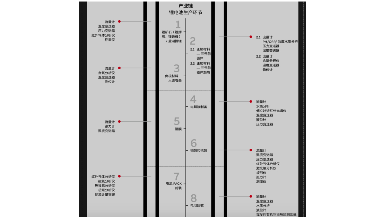 The new energy industry requires advanced technology to power intelligent manufacturing. Lithium battery production covers chemical production processes with operational risks, and accurate, stable and efficient process control that requires advanced measurement and analysis products.