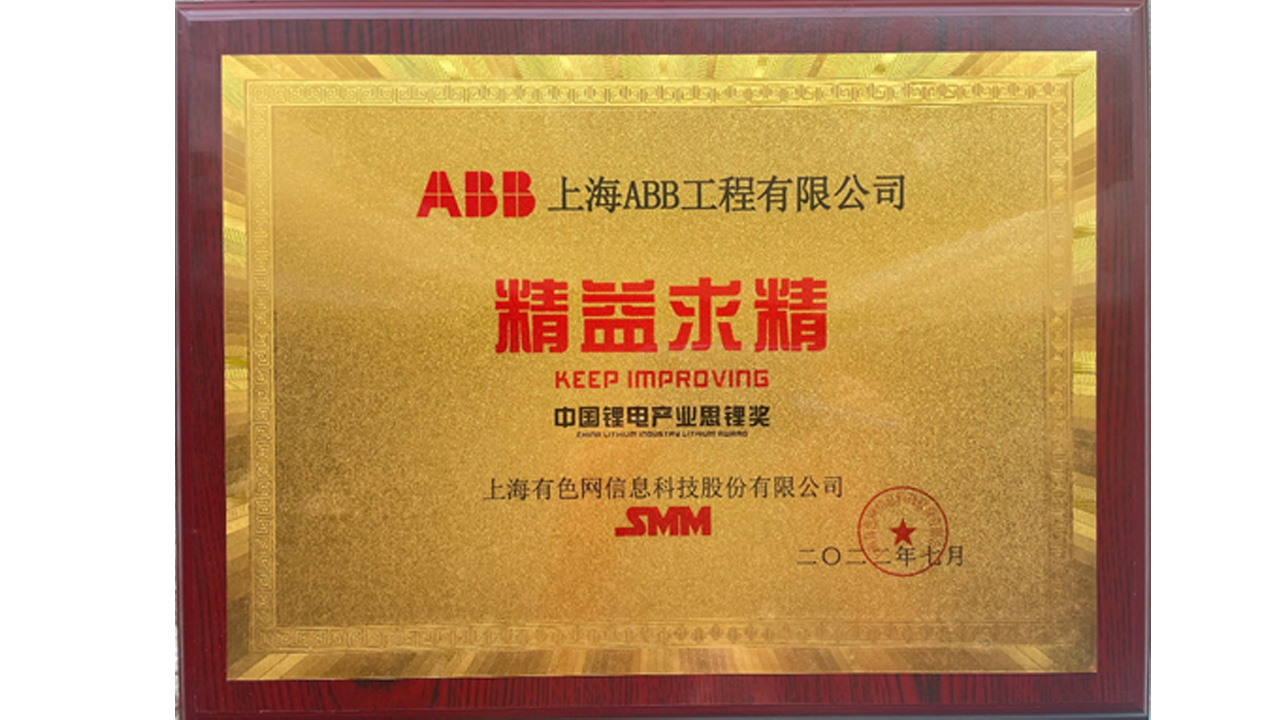 On July 14, 2022, the China Lithium Industry Lithium Award ceremony was held at the 7th China International New Energy Conference 2022 in Chengdu, China. ABB received the ‘Keep Improving’ award to honour the efforts of ABB’s Measurement & Analytics business in developing the lithium battery industry in recent years and helping upstream and downstream enterprises achieve efficient, green and safe production and operation.