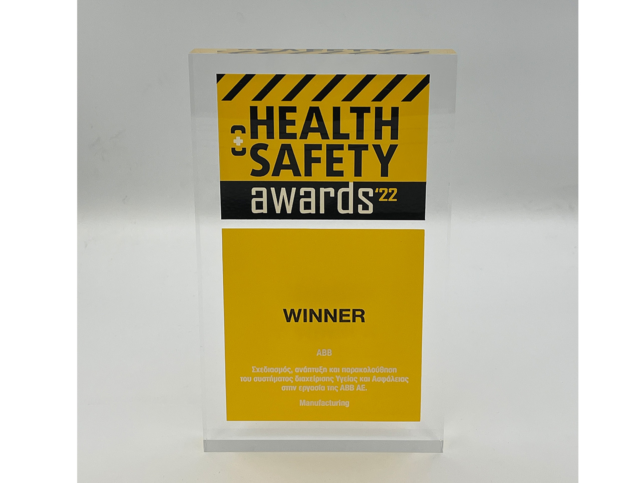 Τέλος, η εταιρεία απέσπασε και το βραβείο στην κατηγορία "Άλλοι Κλάδοι Βιομηχανίας" (Manufacturing), για τα εξαιρετικά επιτεύγματά που αφορούν στο σχεδιασμό, την ανάπτυξη και παρακολούθηση του συστήματος διαχείρισης Υγείας & Ασφάλειας στην ΑΒΒ ΑΕ.