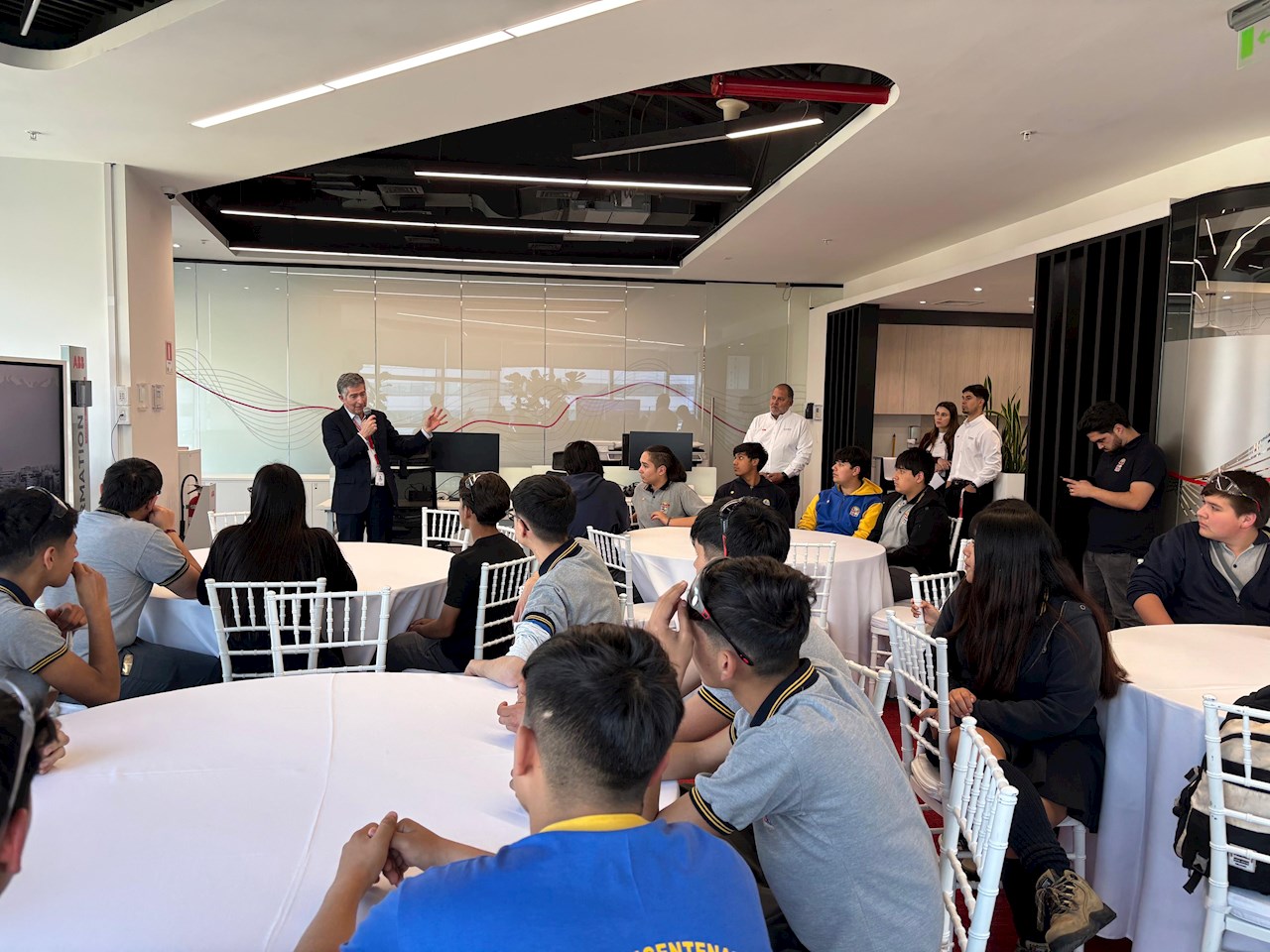 Durante la jornada, los estudiantes participaron en un completo programa que incluyó Palabras de bienvenida de Jorge Abraham, Local Division Manager de Process Industries de ABB en Chile, una presentación de la compañía y un recorrido guiado por distintas estaciones de demostración. En cada punto, pudieron conocer de primera mano las tecnologías y soluciones ABB, explorando equipamiento innovador y conversando con expertos que respondieron a sus inquietudes.