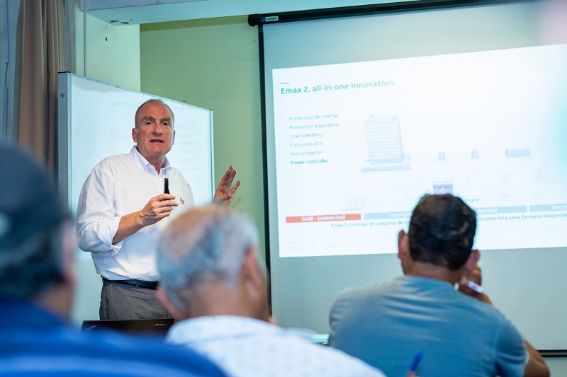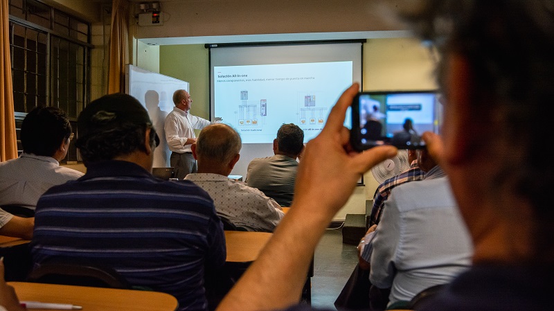 Ante decenas de ingenieros que asistieron a la Asociación Electrotécnica Peruana, Benintendi explicó que el Emax2 destaca porque -además de la función convencional de proteger de cortocircuitos o sobrecargas eléctricas- posee el concepto“All in One“, que significa que puede utilizar diferentes instrumentos de medida, control y comunicación para solucionar cualquier inconveniente eléctrico.