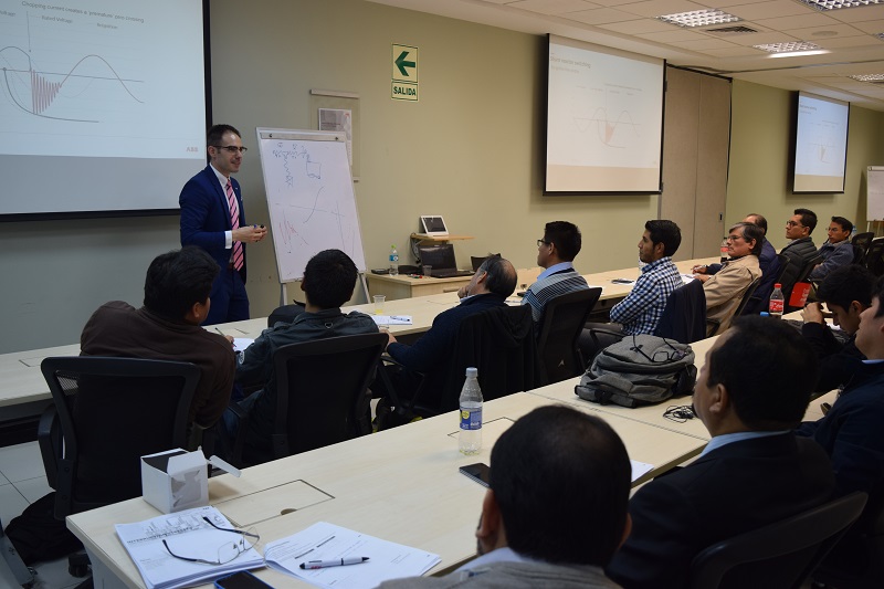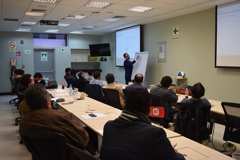 Esta capacitación fue brindada por dos especialistas de ABB en Suecia, Garbiñe Magro, Sales Engineer y Josu Egusquiza, Technology Center, quienes nos enseñaron sobre los esfuerzos eléctricos que se suscitan durante la operación de interruptores de alta tensión y sobre las soluciones innovadoras de interruptores de alta tensión.