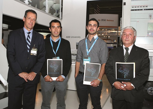 José Paiva, Country Manager de ABB en Chile, hizo entrega del acta oficial de los equipos al Director del Departamento de Ingeniería Eléctrica, Manuel Duarte, quien fue representado por el profesor Nelson Morales, Jefe de Carrera del mismo Departamento de la Universidad de Chile en una ceremonia que se realizó en el marco de Expomin 2014 y que también contó con la presencia de los alumnos ganadores en categoría pregrado del concurso Juan Ignacio Peirano de Ingeniería Civil Industrial y Vincenzo Bassi de Ingeniería Civil Eléctrica.