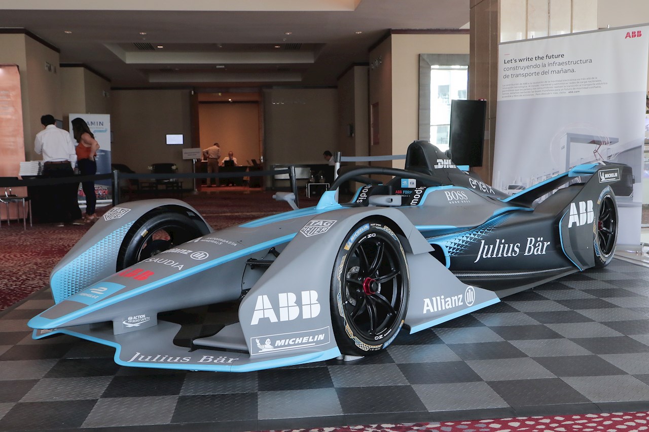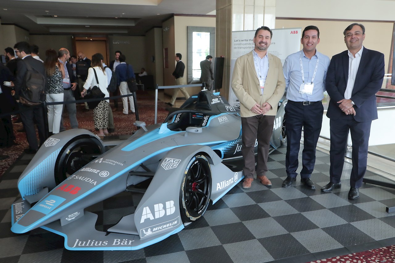 Adicionalmente, y para ir preparando el ambiente y entusiasmando a nuestros clientes, en el evento pudimos exhibir el auto eléctrico que será la estrella en la próxima Formula E en Santiago, el Gen2, el cual fue muy bien recibido por los asistentes, siendo muy fotografiado y admirado, y en especial destacando el relevante rol que tendrá ABB en este gran evento de electromovilidad.