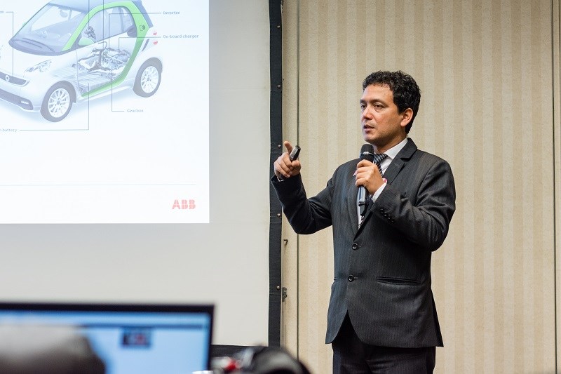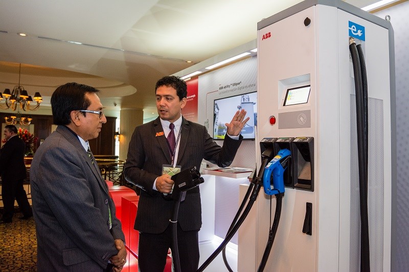 Muelhon estuvo acompañado de los ingenieros de ABB en Perú: German Porras, Johnny Guerrero y Edwin Zorrilla. Con ellos, presentó el Terra53 de 50kW, el cual abastece en sólo 15 minutos a un vehículo eléctrico para que recorra entre 200 y 250 Km. aproximadamente, a un costo 10 veces menor que la gasolina.