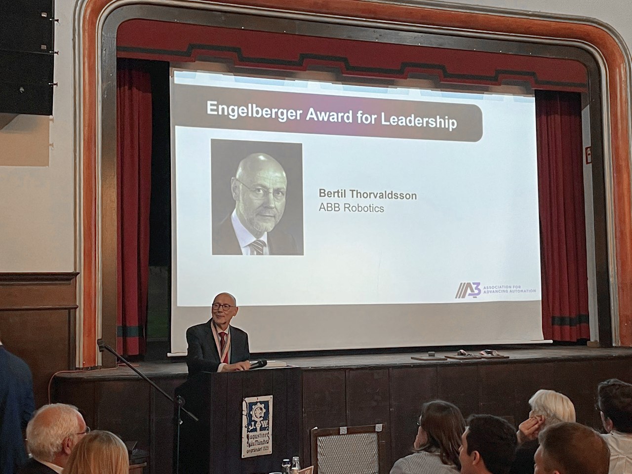 En la 54ª cena de gala de la ISR, que una vez más tuvo lugar junto con la feria Au-tomatica, Bertil recogió su premio como líder de opinión en la industria de la robótica y, más recientemente, en la fabricación "metaverse".