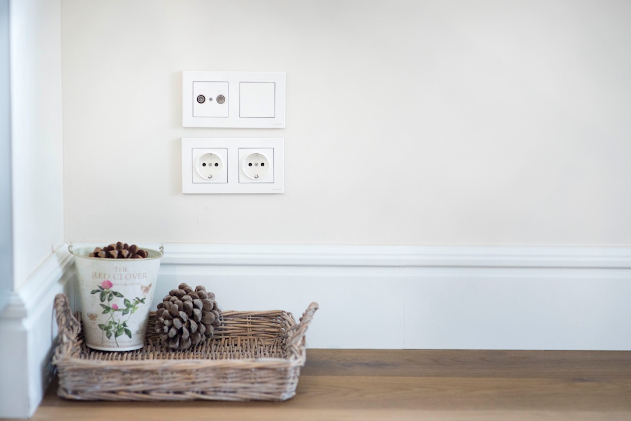 Para actuar de forma local, se ha escogido la serie de mecanismos Sky Niessen en color blanco, con pulsadores free@home. Ésta exitosa gama de mecanismos, no sólo se distingue por su gran calidad y durabilidad, sino que también, beneficia a esta construcción por ser una serie Ecodiseñada, y que cumple con las normas de gestión ambiental del proceso de diseño y desarrollo de productos.