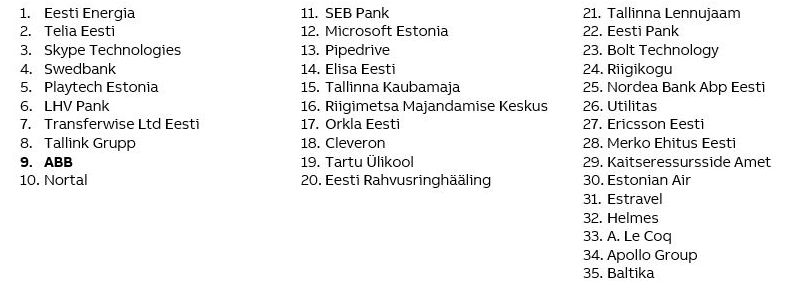 „Suurepärane start uuele aastale!“ rõõmustas ABB Balti riikide juht Jukka Patrikainen. „Tänan siinkohal meie inimesi, kelle igapäevane tööpanus koos kvaliteetsete toodete ja klientide kõrge hinnanguga on olnud ABB stabiilselt kõrge maine kujunemise ning püsimise alus.“