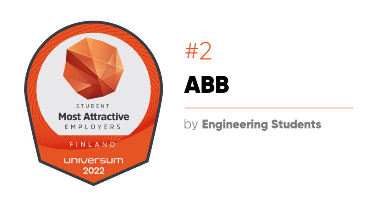 Kaikista työnantajista tekniikan alan opiskelijat valitsivat ABB:n toiseksi suosituimmaksi työnantajaksi Suomessa.