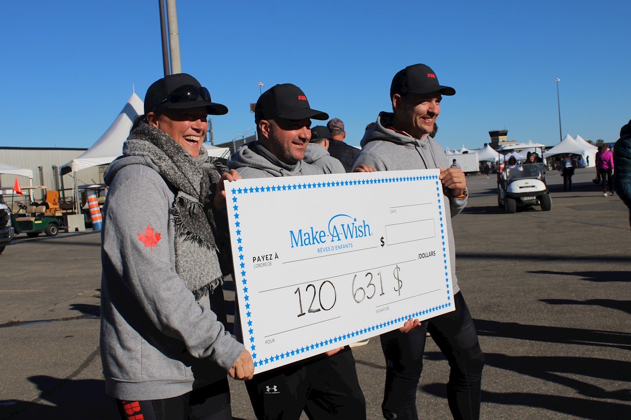 Un moment de fierté : l’équipe ABB remet un chèque des dons amassés lors de l'édition 2025 à Make-A-Wish® Canada. Crédit photo : Noémie Royer