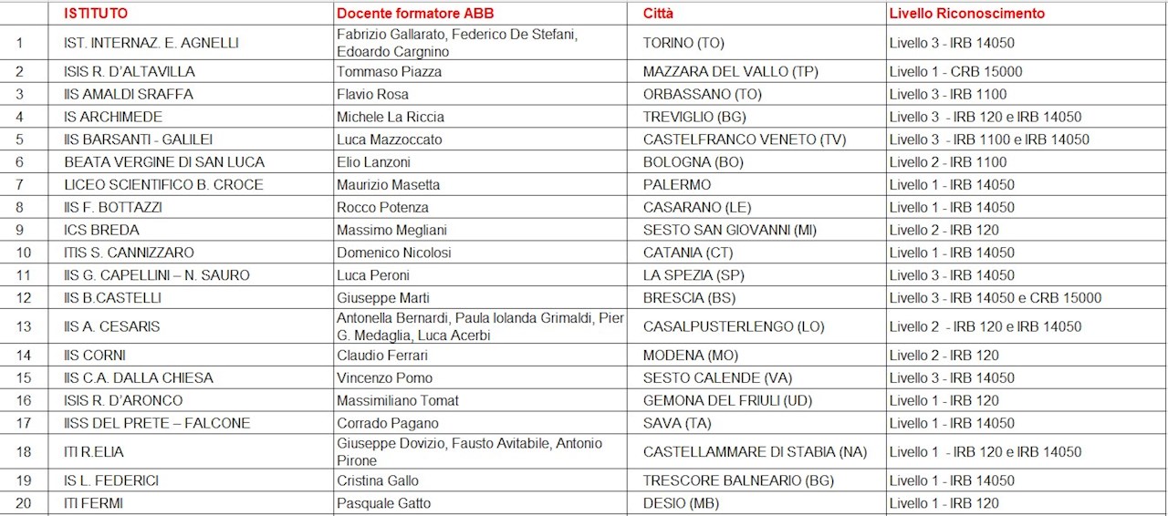 Scarica la lista o visualizza le foto qui sotto per vedere i 59 istituti che sono diventati ABB Robotics Education Lab da inizio 2025