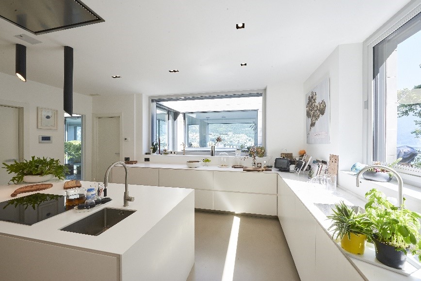 „OFICINASGA“ dizaino studijos įkūrėjas architektas Gianpaolo Sala, sukūręs vienos iš vilų interjerą, sakė: „Pagrindinė idėja buvo sukurti išorinį konteinerį, kuris užtikrintų vaizdų pralaidumą iš bet kurio taško name, su ežeru fone“.