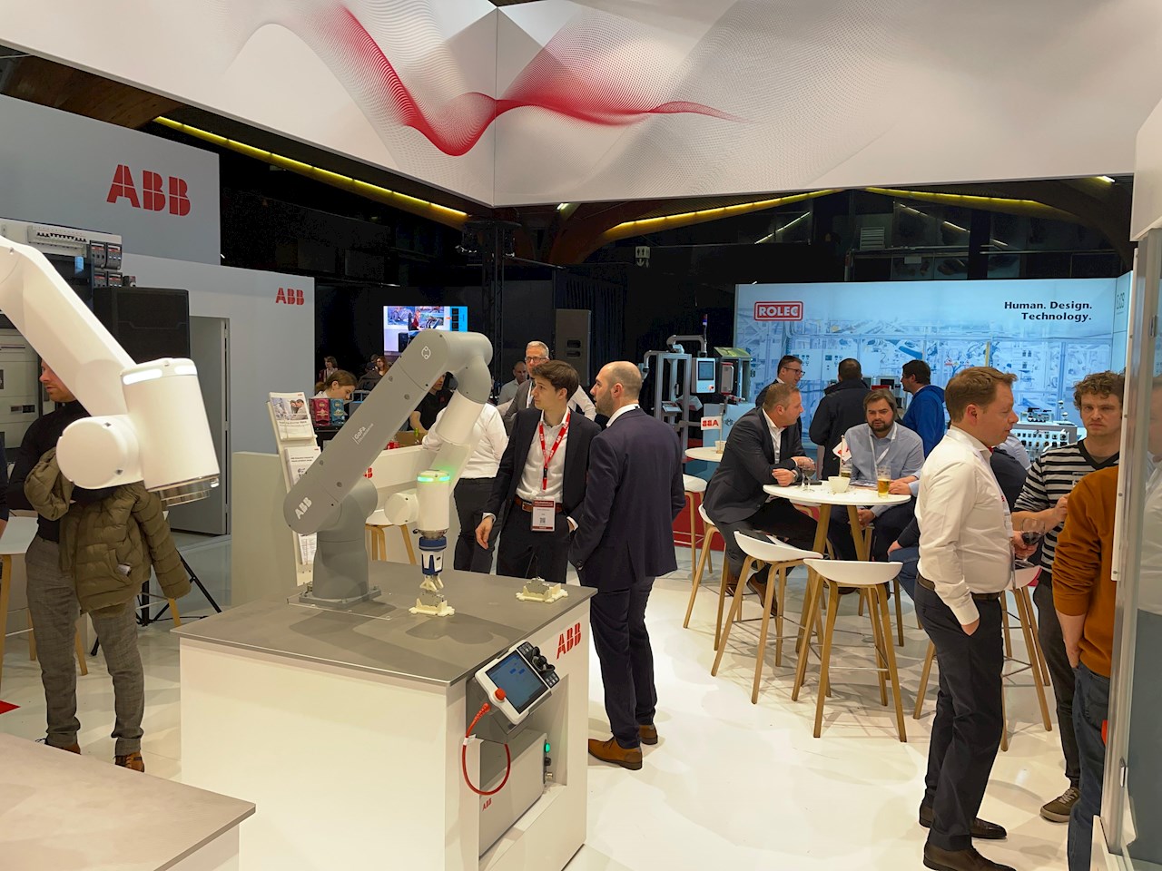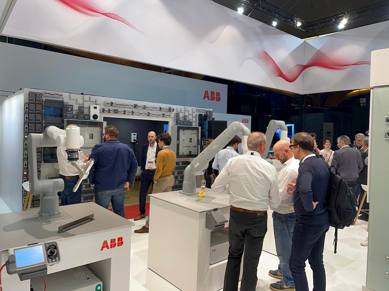 ABB Robotics was goed vertegenwoordigd. Bezoekers zagen een divers geheel aan bewegende robots en cobots: