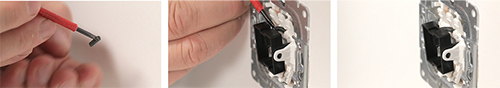 Impulsfjæren monteres under hver enkelt vippe. Innsatsene har samme spesifikasjoner, 16AX, med eller uten montert impulsfjær. For kronevender kan du benytte 1 eller 2 impulsfjærer etter behov. For 1+1+1 kan du bruke 1, 2 eller 3 impulsfjærer.