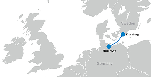 Kraftforbindelsen kobler sammen kraftnettene i Sverige og Tyskland.