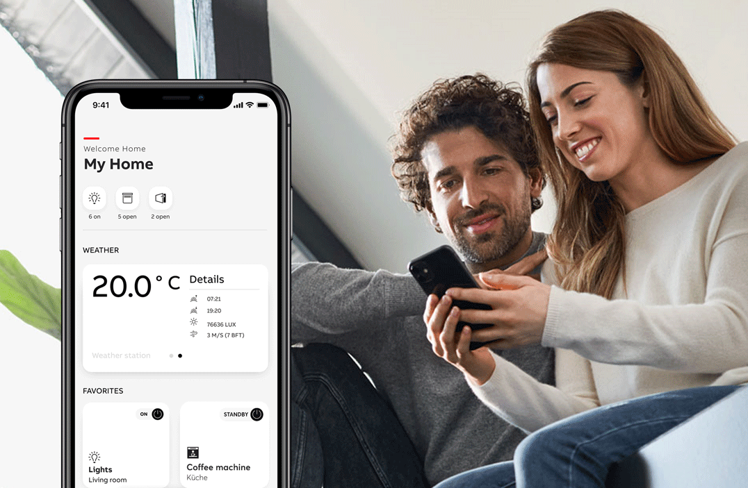 - zyskujesz pełną kontrolę z dowolnego miejsca – dzięki aplikacji ABB-free@home® Next.