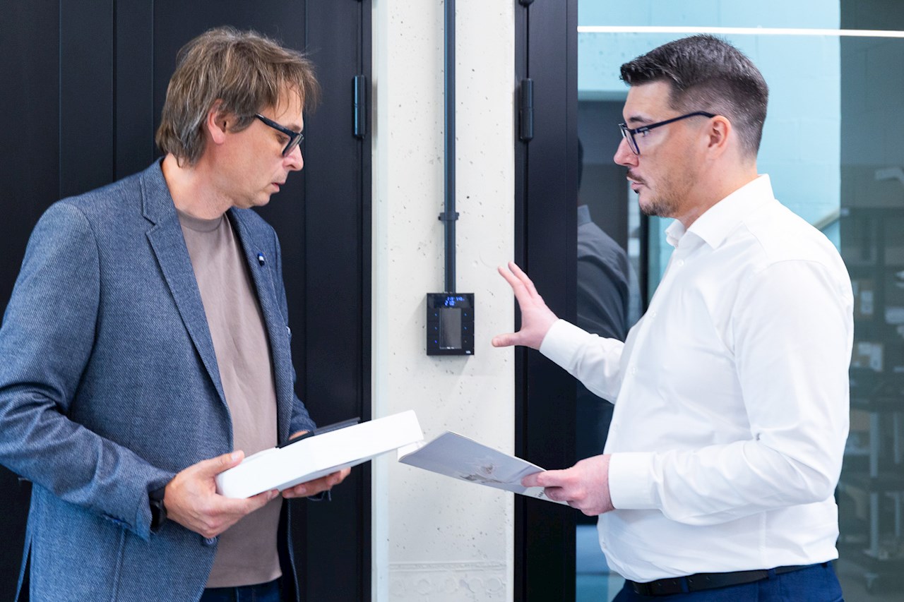 Paweł Piórkowski, AB Instalacje (z lewej) i Mateusz Maląg, ABB. Fot. Urszula Czapla/arch. ABB