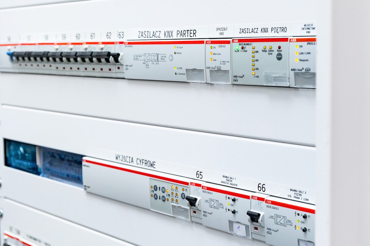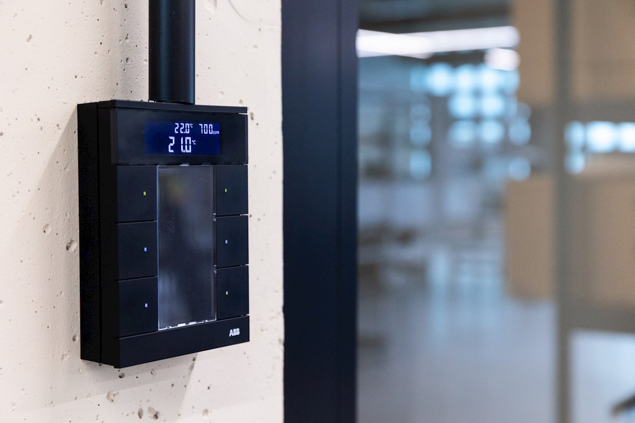 Niewielkie panele dotykowe na ścianach, pozwalające ręcznie ustawiać niektóre parametry, nie rzucają się w oczy, a gdy jednak skupią uwagę, to współgrają z elementami elektronicznych instrumentów. Najważniejsza część instalacji schowana jest w niewielkim, wydzielonym pomieszczeniu, z istnienia którego pewnie mało kto zdaje sobie sprawę. Główną rolę odgrywa tu system ABB i-bus® KNX, który odpowiada za sterowanie ogrzewaniem, oświetleniem i klimatyzacją. Gdy na przykład zakończy się spotkanie w sali konferencyjnej, system przewietrzy pomieszczenie. A gdy część produkcyjną opuści ostatni pracownik, obniży temperaturę, wyłączy klimatyzację, zgasi światło. To wszystko w dyskretnej, jedynie "akompaniującej" aranżacji.
