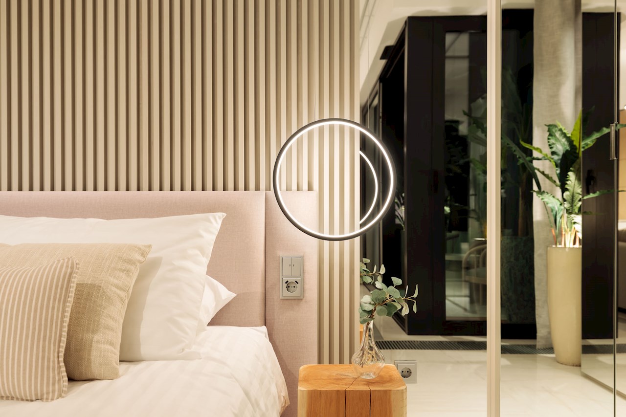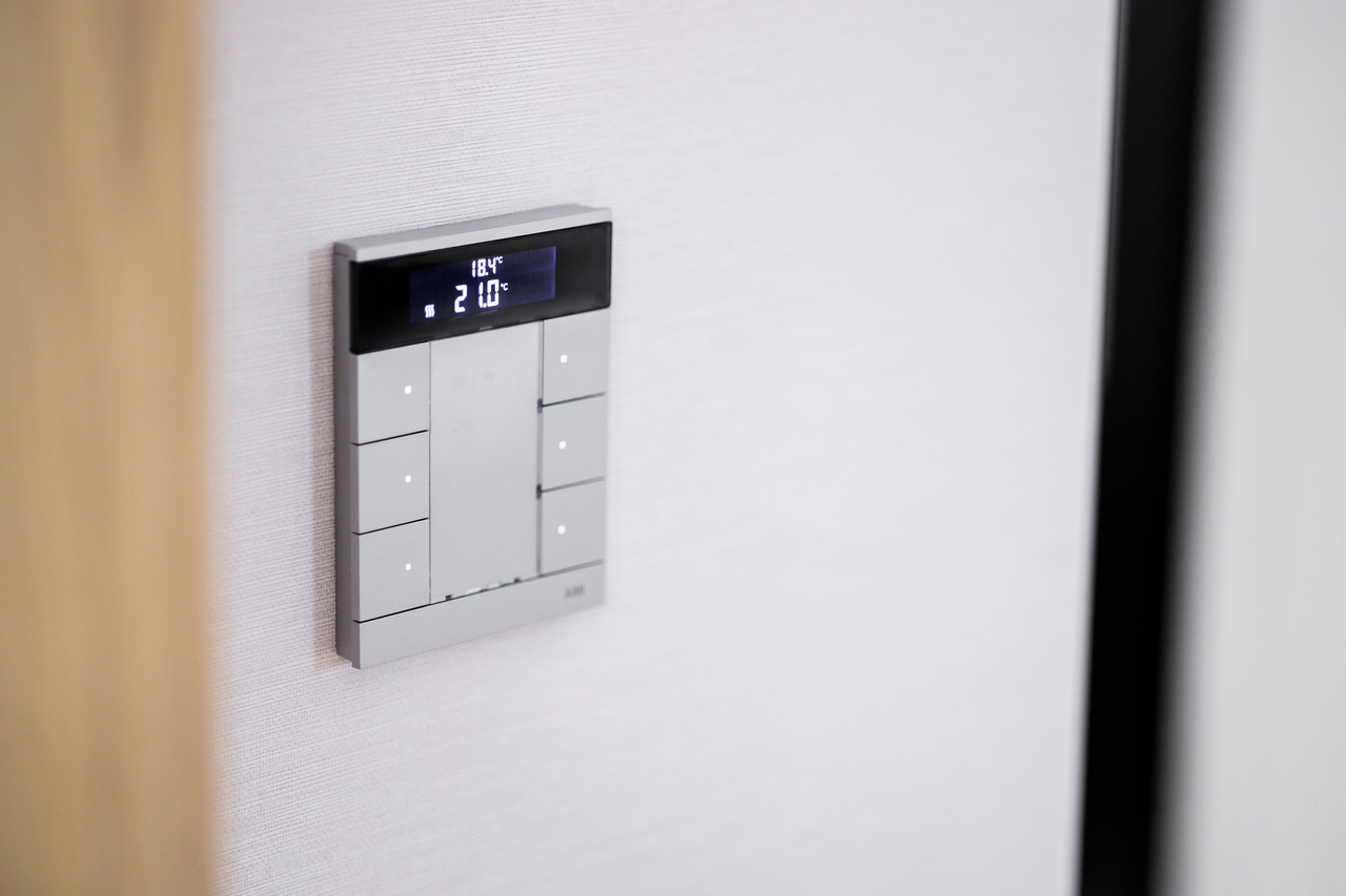 Deweloper wyszedł z założenia, że automatyka w apartamentach powinna być nieprzytłaczająca z perspektywy użytkownika. W pomieszczeniach zastosowano więc regulatory pokojowe ABB Tenton®. Z zewnątrz to dość niepozorne urządzenia, z prostym panelem i niewielkim wyświetlaczem. Jednak w środku łączą wiele funkcjonalności, mierząc m.in. temperaturę, poziom wilgotności i dwutlenku węgla. Zainstalowane w dwóch gamach kolorów, bardzo dobrze wpisują się w subtelną stylistykę szczecińskich apartamentów.