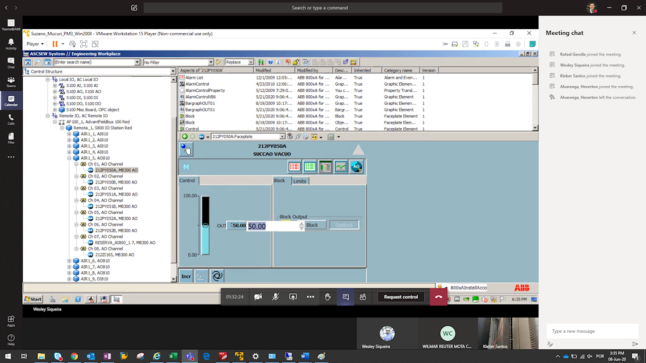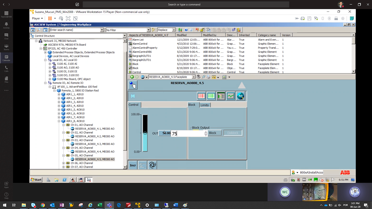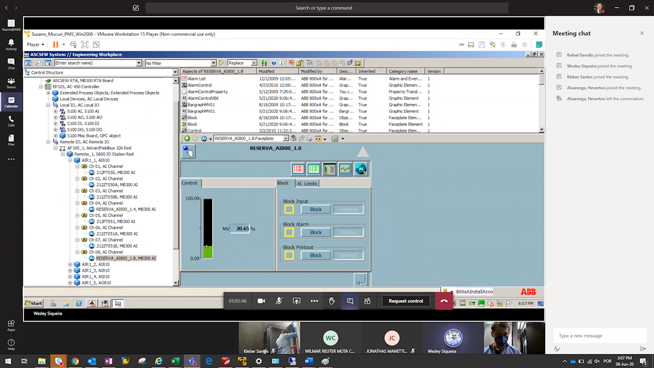 Com as limitações impostas pelo isolamento social, também era preciso realizar reuniões e até mesmo fazer os Testes de Aceitação de Fábrica (TAF) à distância. “O TAF do software e do hardware foram feitos virtualmente por meio do Teams. No caso do software, a dificuldade foi garantir o acesso ao controlador AC450 que estava localizado na ABB em Sorocaba, para fazer os testes de lógicas e telas com participação do cliente e stakeholder. Já para o hardware foi necessário montar uma estrutura com câmeras e compartilhamento de telas, para facilitar o acompanhamento dos testes realizados fisicamente”, explica Gerolla.