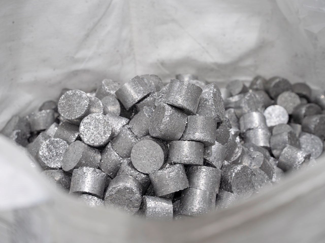 Spånet pressas till puckar som transporteras till smältverket. Tack vare att puckarna är kompakta och fria från emulsion elimineras explosionsrisken vid omsmältning.