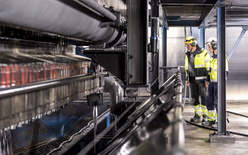 Driften av pressluftfiltren har optimerats med bytet av styrsystem till ABB Ability 800xA. Roland Kumpula, Gisab, och Peter Johansson, ABB, är nöjda med det gemensamma utvecklingsprojektet som ledde till nytt produktionsrekord.