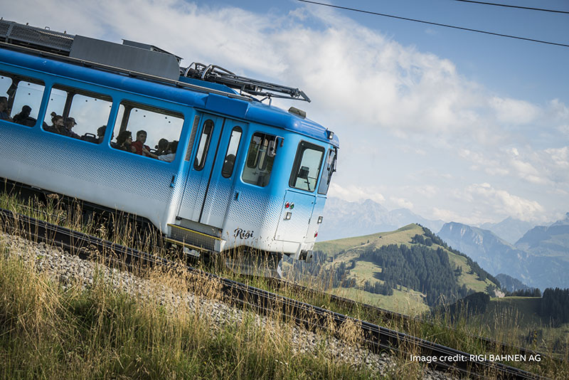 Mount Rigi Railways är grunden till de alpina järnvägarna i Europa. Järnvägsspåret som sträcker sig från stranden vid Luzern-sjön upp till Mount Rigi’s sluttningar, byggdes redan år 1871 och blev Europas första alpina järnväg.