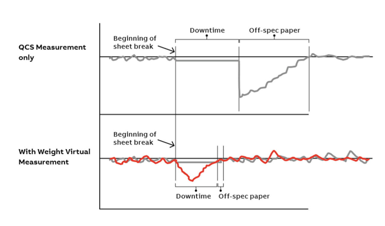 Den nya digitala lösningen använder data från det som påverkar slutproduktens vikt – som massaflöde, koncentration, retention och maskinhastighet - för att tillhandahålla en online-viktmätning under banbrott då kvalitetsstyrsystemet (QCS) inte kan ge en mätning eftersom det inte finns något papper på banan.