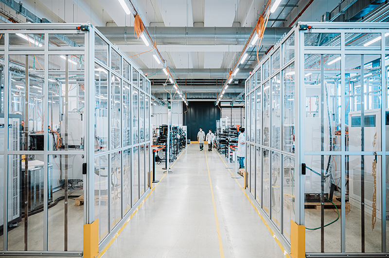Den nya produktionsanläggningen utgör en toppmodern referens för branschen och producerar en snabbladdare på 20 minuter tack vare de sju produktionslinjerna. 15 provningsanläggningar kan simulera över 400 laddningssessioner per dag och integrerade automationslösningar förbinder fabriksgolvet med det innovativa automatiserade lagret och säkerställer en optimerad lagerstyrning, full spårbarhet och effektiv drift, stöttat av automatiskt styrda fordonssystem (AGV:er) och hantering av fordon.
