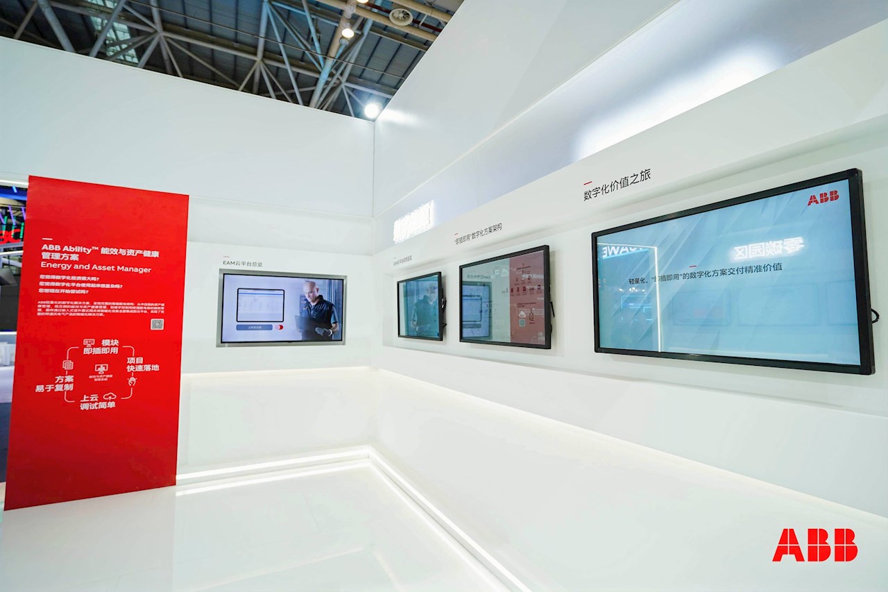 在数字能源展区,ABB展示轻量化的数字化解决方案,呈现了完整的智能配电架构;从中压侧的资产管理、低压侧的能效与资产管理、到楼宇控制和终端配电侧的能耗管理,最终通过嵌入式或外置式网关,全部集成到ABB Ability EAM能效与资产健康管理方案,通过云平台实现了完整的带通讯电气产品的智能化解决方案,帮助工业企业提升效率、降低成本、提高安全性与核心竞争力。