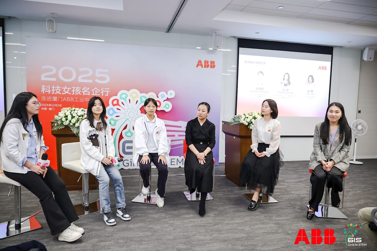 在“女性成长分享”座谈会上,来自ABB技术研发、HSE(健康、安全和环境)和计划实施的三位同事与同学们展开真诚交流:“兴趣是创造力的源泉,也是驱动学习的内在动力。希望今天的所见所闻,能在大家心中播下科技的种子,助力你们勇敢追寻STEM梦想,让青春在创新中绽放。” 她们结合自身学习和成长经历,围绕专业选择、能力培养、职业方向、工作与生活的平衡等话题展开探讨,鼓励女孩们保持好奇、坚持探索,不断拓展自己的视野,去探索更广阔的天地。