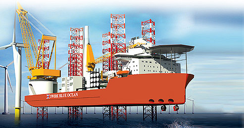 ABB目前已经确定为8艘在建风电安装船提供电力推进系统,其中包括由世界三大造船企业之一 - 韩国三星重工建造的世界性能最先进的Swire Blue Ocean号。Swire Blue Ocean号配备了ABB Azipod® CO紧凑型吊舱电力推进系统。这种系统能够保证安装船在水深75米的海域全天候工作,作业精度可以达到厘米级别。相比之下,现有的风电安装船只能够应付45米水深,而且在恶劣天气下必须停止作业。