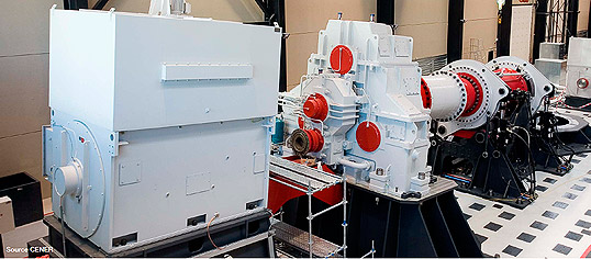 西班牙国家可再生能源中心(National Renewable Energy Center, CENER)就是一所世界顶级的风力发电机测试机构。该中心的5个实验室能够对风力发电机包括涡轮在内的各个部分进行测试。对涡轮进行寿命测试的时候,实验设备需要开足马力24小时不间断工作几个月,以便模拟涡轮在几十年寿命中需要面对的机械、电气和热应力考验。