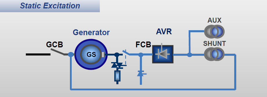 The ABB Static Excitation System regulates the terminal voltage and the reactive power flow of the synchronous machine by direct control of the field current using thyristors converters.