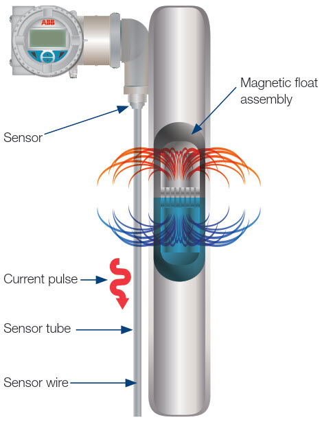 This requires a field-mounted sensor head, a waveguide, and an internal magnetic float. The level head generates electrical pulses which travel through the vertical wiring within the waveguide or sensor tube. These fixed pulses generate a magnetic field around the wire, which interacts with the float inside the containment or process chamber.